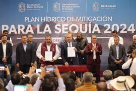 Morelia, Michoacán a 18 de Octubre de 2023.- El gobernador Alfredo Ramírez Bedolla, firmó el decreto de creación del plan hídrico para la mitigación de la sequía en Michoacán, tras mencionar que el estado enfrenta uno de los periodos más graves de su historia por el cambio climático...