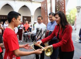 Uruapan, Michoacán, 14 de septiembre de 2023.- En el marco de las fiestas patrias, la titular de la Secretaría de Educación del Estado (SEE), Gabriela Molina Aguilar, hizo un llamado a fomentar la cultura cívica y los valores patrios, en gira de trabajo en Uruapan, junto al presidente...