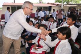 Coahuayana, Michoacán, 12 de septiembre de 2023.- El gobernador Alfredo Ramírez Bedolla, inauguró la reconstrucción de una barda perimetral de 160 metros de longitud de la Escuela Primaria 5 de Febrero de la comunidad de Boca de Apiza, del municipio de Coahuayana, afectada por el sismo en septiembre...