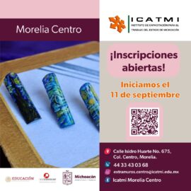 Morelia Michoacán, a 04 de Agosto del 2023.- El Instituto de Capacitación para el Trabajo del Estado de Michoacán (Icatmi) abre su periodo de inscripciones para el cuatrimestre 2023-2024, con más de 800 cursos en todo el estado, de los cuales 274 se imparten en la capital michoacana,...