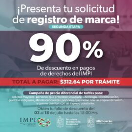 Morelia, Michoacán a 17 de julio de 2023.- De acuerdo con la Secretaría de Desarrollo Económico (Sedeco), este martes 18 de julio es el último día para acceder al beneficio del 90 por ciento de descuento sobre la solicitud de registro de marca ante el Instituto Mexicano de...