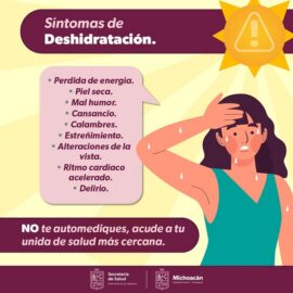 Morelia, Michoacán a 05 de Junio de 2023.- La Secretaría de Salud del Estado (SSM) exhorta a la población a tomar medidas preventivas, ante la tercera ola de calor generará ambientes que irán desde cálidos a calurosos, y temperaturas de 40 a 45 grados en 12 estados del...
