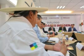 Morelia, Michoacán a 02 de Junio de 2023.- En un encuentro con representantes de comunidades indígenas, el secretario de Gobernación de México, Adán Augusto López Hernández, y el gobernador Alfredo Ramírez Bedolla, les reiteraron su respaldo para seguir impulsando proyectos y acciones en pro de las localidades con...
