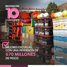 Morelia, Michoacán, 24 de mayo de 2023.- Con el objetivo de mejorar la calidad educativa, a través de la Secretaría de Educación del Estado (SEE) se destinarán alrededor de 670 millones de pesos para atender diversas necesidades en materia de infraestructura, mantenimiento, mobiliario, equipamiento y útiles, principalmente en...