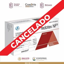 Morelia, Michoacán a 19 de Mayo de 2023.- La Comisión Federal para la Protección contra Riesgos Sanitarios (Cofepris), a través de la Secretaría de Salud de Michoacán (SSM), informa a la población sobre la cancelación del medicamento Redotex y Redotex NF, al determinar que su consumo representa un...