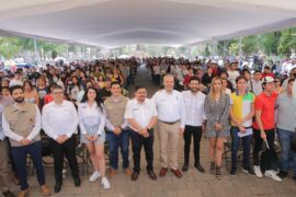 Morelia, Michoacán a 13 de Mayo de 2023.- El gobernador Alfredo Ramírez Bedolla y el subsecretario de Empleo y Productividad Laboral de la Secretaría del Trabajo y Previsión Social, Marath Bolaños López, entregaron tarjetas del Banco del Bienestar a beneficiarios del programa «Jóvenes Construyendo el Futuro». Mil 400...