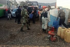 Uruapan, Michoacán a 11 de Mayo del 2023.- En atención oportuna a una denuncia ciudadana, personal de la Secretaría de Seguridad Pública (SSP), logró asegurar varios garrafones cuyo interior contenían un aproximado de 500 litros de combustible, en el municipio de Uruapan. Los efectivos de la Guardia Civil...