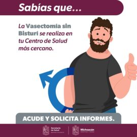 Morelia, Michoacán a 06 de Mayo de 2023.- La Secretaría de Salud de Michoacán (SSM), refuerza y promueve la paternidad responsable a través de la vasectomía sin bisturí, método anticonceptivo seguro, eficaz, gratuito y que no requiere de hospitalización. En lo que va del año, la dependencia estatal...
