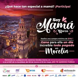 Morelia, Michoacán a 24 de Abril de 2023.- ¡Llegó nuestro gran evento!, Fundación Merza reconocerá el valor de las madres de familia a través del evento Soy Mamá Merza, el cual seleccionará a 100 madres ganadoras en este 2023 que tendrán la oportunidad de vivir un recorrido turístico...