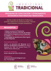 Morelia, Michoacán, 28 de marzo de 2023.- La Secretaría del Bienestar (Sedebi) convoca a las mujeres michoacanas de 18 años en adelante que no cuentan con un empleo y que estén interesadas en adquirir conocimientos sobre la medicina tradicional, a solicitar una capacitación en su municipio de manera...
