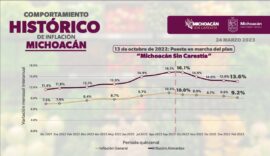 Morelia, Michoacán, 27 de marzo de 2023.- El descenso en precios de los 25 productos de la canasta básica registrado en Michoacán, impactó a la baja el índice inflacionario alimentario, que en general disminuyó un 2.5 por ciento en los últimos cinco meses, informó este lunes el secretario de...