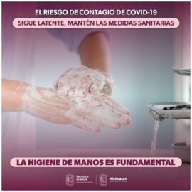 Morelia, Michoacán, 2 de febrero de 2023.- El lavado de manos con agua y jabón disminuye el riesgo de contraer enfermedades respiratorias agudas como el COVID-19, por ello, la Secretaría de Salud de Michoacán (SSM) llama a la población a no bajar la guardia y hacerlo de manera...