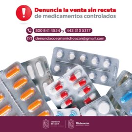 Morelia, Michoacán, 20 de enero del 2023.- La Comisión Estatal para la Protección contra Riesgos Sanitarios (Coepris) reitera a la población que la venta de medicamentos controlados sin receta médica está prohibida, ello ante los riesgos que pueden generar a la salud si se consumen en dosis no...