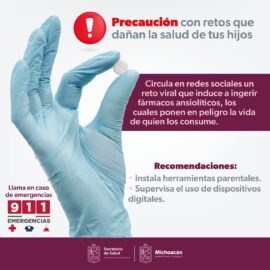 Morelia, Michoacán, 20 de enero del 2023.- Luego de que en redes sociales se hiciera popular un peligroso juego, en el que invitan a que los adolescentes y niños a ingerir fármacos antidepresivos, para poner a prueba el tiempo en que el medicamento hace reacción, la Secretaría...