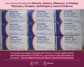 Morelia, Michoacán a 12 de Enero del 2023.- Los centros de salud de Morelia, Zamora, Zitácuaro, La Piedad, Pátzcuaro, Uruapan, Apatzingán y Lázaro Cárdenas, ya cuentan con abasto suficiente de Paxlovid, el único medicamento autorizado para tratar el COVID-19, cuya venta no está disponible en farmacias, solo en...