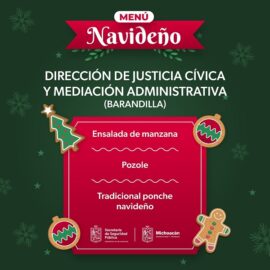 Morelia, Michoacán a 22 de Diciembre 2022.- Pozole, ponche y ensalada de manzana, serán los alimentos que se darán en la cena navideña que la Secretaría de Seguridad Pública (SSP), a través de la Dirección de Justicia Cívica y Mediación Administrativa (Barandilla), brindará a las personas retenidas de...