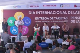 Uruapan, Michoacán a 03 de Diciembre del 2022.- El gobernador Alfredo Ramírez Bedolla entregó de forma simbólica tarjetas de la Pensión Universal para el Bienestar a Personas con Discapacidad de 30 a 64 años de edad, que ascienden a una inversión de 9.5 millones de pesos. En el...