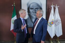 Morelia, Michoacán, 29 de noviembre del 2022.- El gobernador Alfredo Ramírez Bedolla refrendó al ministro consejero de Seguridad para la Embajada Americana en México, Timothy Dumas, el compromiso de otorgar facilidades para implementar esquemas de acompañamiento y protección a trabajadores de USDA-APHIS (Servicio de Inspección Animal y Vegetal)...