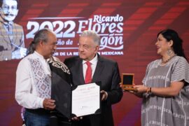 Ciudad de México, 17 de noviembre del 2022.- Esta mañana, en Palacio Nacional, el maestro artesano michoacano, Mario Agustín Gaspar Rodríguez, recibió de manos del presidente de la república, Andrés Manuel López Obrador, el Premio Nacional de Artes y Literatura 2020 y 2021, acompañado también de la secretaria...