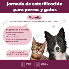 Morelia, Michoacán, 25 de octubre del 2022.- En el marco del mes nacional de la esterilización, la Secretaría de Salud de Michoacán (SSM), a través del departamento de Vectores y Zoonosis, realizará una jornada de esterilización canina y felina gratuita, en el centro de salud Santa Cecilia de...