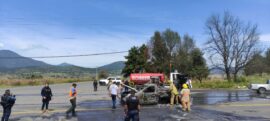 Paracho, Michoacán, a jueves 20 de octubre del 2022.- El personal de la Guardia Civil de la Secretaría de Seguridad Pública (SSP) se movilizó en coordinación con las Policías locales al entronque de la carretera Aranza-Cheranástico, donde un grupo de civiles interceptó e incendió un vehículo comercial para...