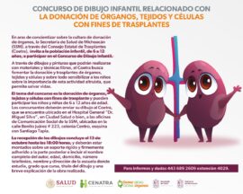 Morelia, Michoacán, 7 de septiembre del 2022.- En aras de concientizar sobre la cultura de donación de órganos, la Secretaría de Salud de Michoacán (SSM), a través del Consejo Estatal de Trasplantes (Coetra), invita a la población infantil, de 6 a 12 años, a participar en el Concurso...