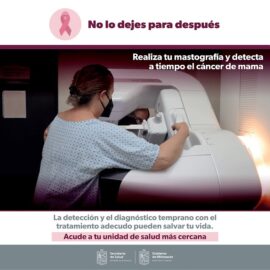 Morelia, Michoacán, 5 de octubre del 2022.- Una mastografía al año puede salvar la vida de una mujer que pudiera padecer cáncer de mama, por ello, la Secretaría de Salud de Michoacán (SSM) invita a la población femenina a realizarse este estudio de forma gratuita en sus hospitales...