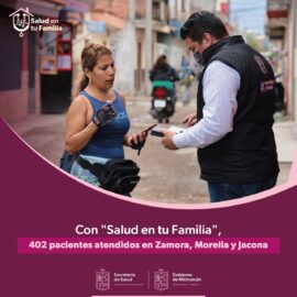 Morelia, Michoacán, 24 de agosto del 2022.- La estrategia del Gobierno de Michoacán de llevar atención médica gratuita casa por casa continúa en la entidad y con el programa de “Salud en tu Familia” se han visitado 8 mil 109 casas y otorgado consultas y servicios de laboratorio...