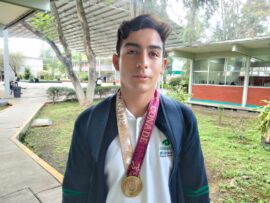 Morelia, Michoacán a 24 de Junio del 2022.- Edwin Gómez Martínez, alumno del Colegio de Educación Profesional Técnica del Estado de Michoacán (Conalep), plantel Morelia 1, ganó medalla de oro en la disciplina de frontón, modalidad de Paleta Cuero, categoría Juvenil B, en los Juegos Nacionales de la...