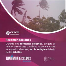 Morelia, Michoacán, 15 de junio de 2022.- La Secretaría de Gobierno, a través de la Coordinación Estatal de Protección Civil exhorta a la población michoacana a intensificar las medidas preventivas y de autocuidado en esta temporada de lluvias y huracanes. • Extremar precauciones ante presencia de vientos fuertes...