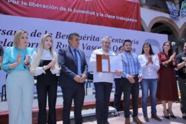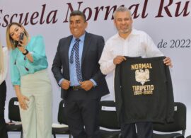 Morelia, Michoacán, 21 mayo del 2022.- Al encabezar el acto de conmemoración del Centenario de la Escuela Normal Rural “Vasco de Quiroga” de Tiripetío, el gobernador Alfredo Ramírez Bedolla afirmó que su administración es aliada de los normalistas y docentes que, en conjunto, buscan desterrar procesos de corrupción...