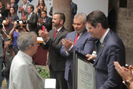 Morelia, Michoacán, 18 de mayo de 2022.- El gobernador Alfredo Ramírez Bedolla, asistió a la entrega de la Presea Generalísimo Morelos, que este año recibió, Marco Antonio Aguilar Cortés, en el marco de conmemoración del 481 Aniversario de la Fundación de Morelia. Al hacer uso de la palabra,...