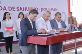 Sahuayo, Michoacán, 12 de mayo del 2022.- El gobernador Alfredo Ramírez Bedolla firmó convenio de coordinación con los ayuntamientos de Sahuayo y Jiquilpan para impulsar proyectos sustentables y sostenibles para el fortalecimiento de la infraestructura, movilidad, medio ambiente, servicios públicos y desarrollo ordenado de la zona conurbada entre...