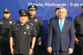 Morelia, Michoacán, 9 de mayo del 2022.- Este lunes, el gobernador del estado, Alfredo Ramírez Bedolla, acompañado por el secretario de Seguridad Pública, General José Alfredo Ortega Reyes, encabezó el pase de revista a los distintos agrupamientos que conforman la Policía Michoacán. “Señor Gobernador sea este acto el...