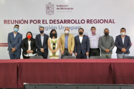 Ziracuaretiro, Michoacán, 20 de enero del 2022.- En reunión regional de desarrollo con presidentes municipales de Tingambato, Taretan, Charapan, Nuevo Parangaricutiro, Paracho, Tancítaro, Ziracuaretiro y Uruapan, el gobernador Alfredo Ramírez Bedolla, informó que se proyectan este año más de 810 millones de pesos en inversiones para infraestructura, seguridad,...