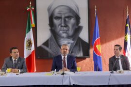 Morelia, Michoacán, 26 de octubre del 2021.- El gobernador Alfredo Ramírez Bedolla presentó las ventajas competitivas de Michoacán y sus potencialidades productivas a embajadores de la Asociación de Naciones del Sureste Asiático (ASEAN), a quienes manifestó: «deseo que el crecimiento económico de nuestros países sea mutuo, y podamos...