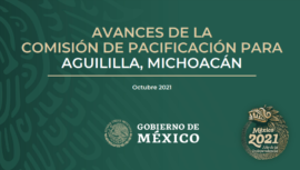 Morelia, Michoacán, 09 de octubre de 2021.- La secretaria de Seguridad y Protección Ciudadana, Rosa Icela Rodríguez, presentó las acciones del Plan Integral de Bienestar para el municipio de Aguililla, Michoacán, donde habitan 12 mil personas. Durante la exposición, encabezada por el presidente Andrés Manuel López Obrador, la...