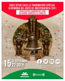 Morelia, Michoacán, a 15 de septiembre de 2021.-Este año, la ceremonia del Grito de la Independencia por parte del Gobierno del Estado se realizará de manera virtual por la emergencia del COVID-19. Será en punto de las 22:30 horas cuando el Gobernador de Michoacán, Silvano Aureoles Conejo, dé...