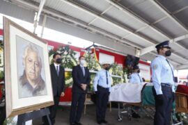Morelia, Michoacán, a 30 de junio de 2021.- Autoridades estatales, familiares, amigos y personal de las diferentes corporaciones de Protección Civil participaron en el homenaje de cuerpo presente que se realizó en las instalaciones de la institución, para despedir a Pedro Carlos Mandujano Vázquez, coordinador estatal de Protección...