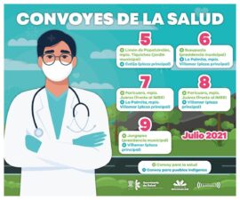Morelia, Michoacán, a 4 de julio de 2021.- La Secretaría de Salud de Michoacán (SSM), informa a la población sobre los lugares en los que se encontrarán los Convoyes de Salud y para Pueblos Indígenas, del 5 al 9 de julio. El Convoy de la Salud se instalará...