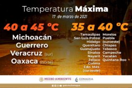 Morelia, Michoacán, 17 de marzo de 2021.- La Coordinación Estatal de Protección Civil invita a las a los michoacanos a seguir con medidas preventivas y de autocuidado por las temperaturas calurosas que continuarán presentes en gran parte del territorio estatal. Lo anterior en virtud que persiste un sistema de...