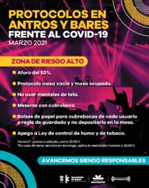 Morelia, Michoacán, a 4 de marzo de 2021.- Para lograr la reactivación gradual del sector económico sin desatender las medidas de prevención para evitar el COVID-19, en este mes, los antros y bares deberán cumplir de manera estricta con las medidas emitidas por la Secretaría de Salud. Estos...