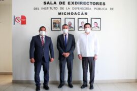 Morelia, Michoacán a 4 de marzo del 2021.- Con la representación del gobernador, Silvano Aureoles Conejo, el secretario de Gobierno, Armando Hurtado Arévalo entregó el nombramiento a Ángel II Alanís Pedraza como nuevo director general del Instituto de la Defensoría Pública del Estado de Michoacán. El encargado de la...