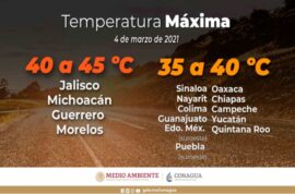 Morelia, Michoacán, 4 de marzo de 2021.- Temperaturas superiores a los 40 grados Celsius podrían registrarse en las próximas horas en zonas de la Tierra Caliente y Costa del estado, por ello, Protección Civil estatal invita a la población a tomar previsiones para evitar afectaciones a la salud y...