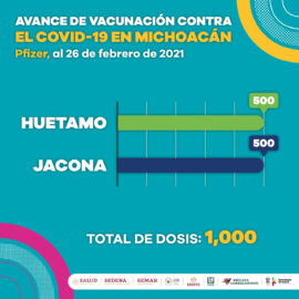 Morelia, Michoacán, a 26 de febrero de 2021.- La Secretaría de Salud de Michoacán (SSM), informa que 23 mil 33 adultos mayores de 60 años han recibido la primera dosis de la vacuna contra el COVID-19 en nueve municipios, La vacunación se mantiene activa en los municipios de Villamar,...