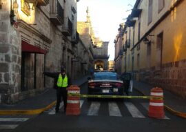 Morelia, Michoacán, a 27 de Diciembre de 2020. Como medida para reducir la movilidad y prevenir nuevos contagios del COVID-19, elementos de la Secretaría de Seguridad Pública (SSP), realizan cortes a la circulación en el Centro de la capital michoacana. Personal de la Dirección de Tránsito y Movilidad...