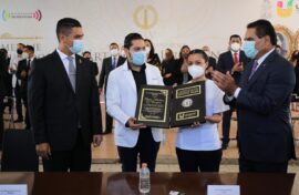 Uruapan, Michoacán, a 21 de octubre de 2020.- Por su incansable lucha en la primera línea de batalla contra el COVID-19, personal de la Secretaría de Salud, IMSS e ISSSTE recibieron la Presea Mártires de Uruapan. El Gobernador de Michoacán, Silvano Aureoles Conejo, encabezó este miércoles la ceremonia...