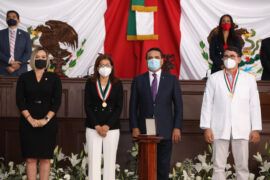 Morelia, Michoacán, a 22 de octubre de 2020.- El Gobernador de Michoacán, Silvano Aureoles Conejo y diputados de la LXXIV Legislatura del estado, entregaron este jueves la Presea Constitución de 1814 a personal médico, como reconocimiento a la valentía, vocación y desempeño que han tenido ante la lucha contra...