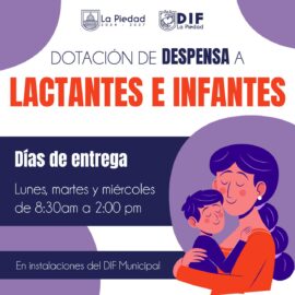 La Piedad, Michoacàn a 29 de Octubre del 2024.- El Sistema para el Desarrollo Integral de la Familia (DIF) informa a la población beneficiada con el Programa Alimentario de Dotaciones para infantes y lactantes que pueden acudir a las instalaciones a recoger su despensa. La titular de la...