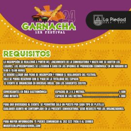La Piedad, Michoacàn a 6 de Noviembre de 2024.- Este próximo domingo 10 de noviembre se llevará a cabo la primera edición del “Festival de la Garnacha”, en el municipio de La Piedad Michoacán, donde a partir de las 10 de la mañana la Plaza Principal contará con...
